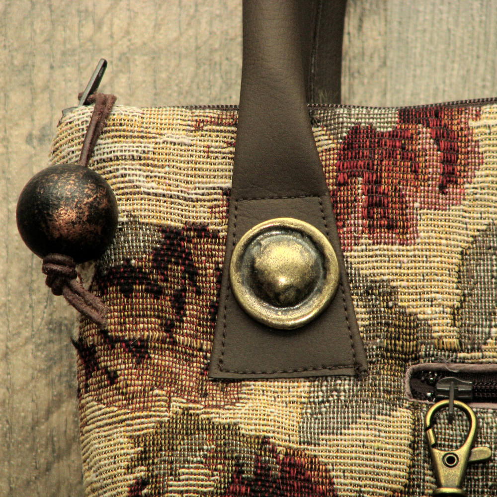 Große Rosen zieren diese Tasche aus Gobelinstoff.
