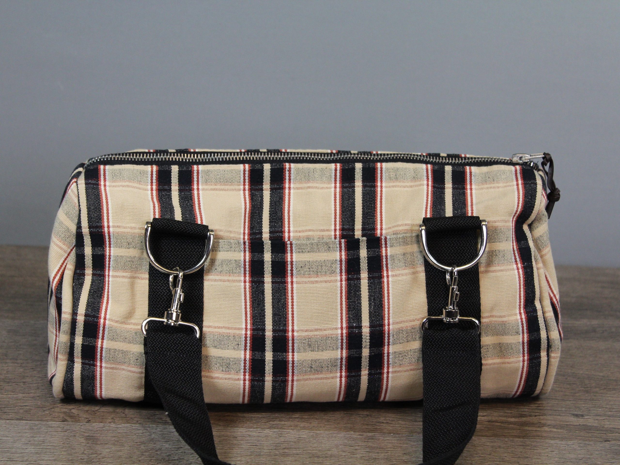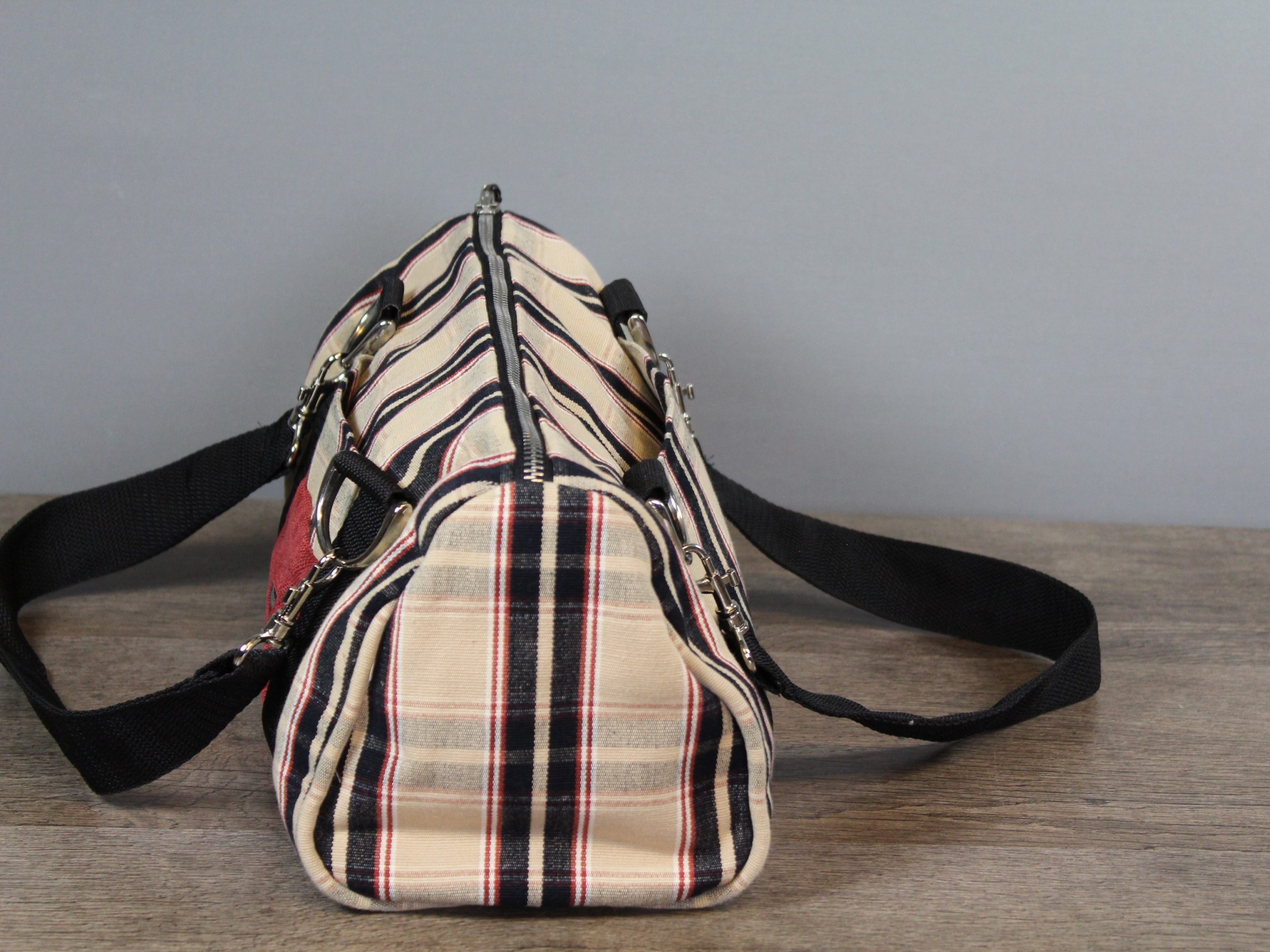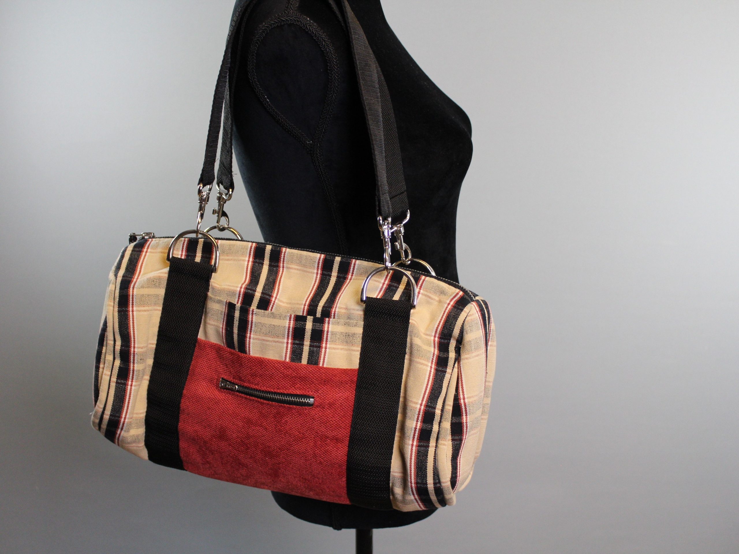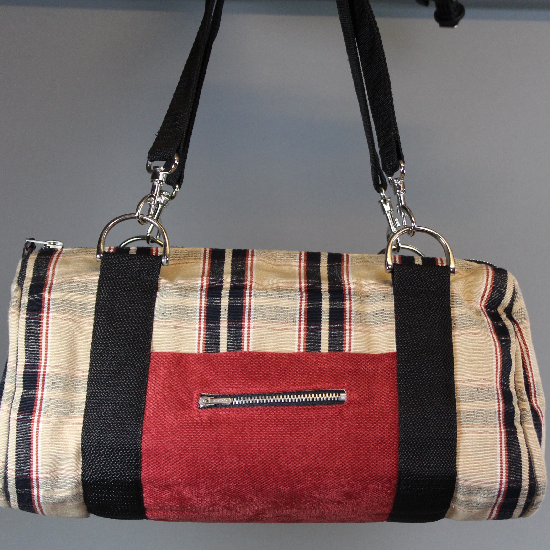 Eine schöne Kombination in schwarz/rot und dem schwarzen Gurt und den silbernen Karabiner und D-Ringen.