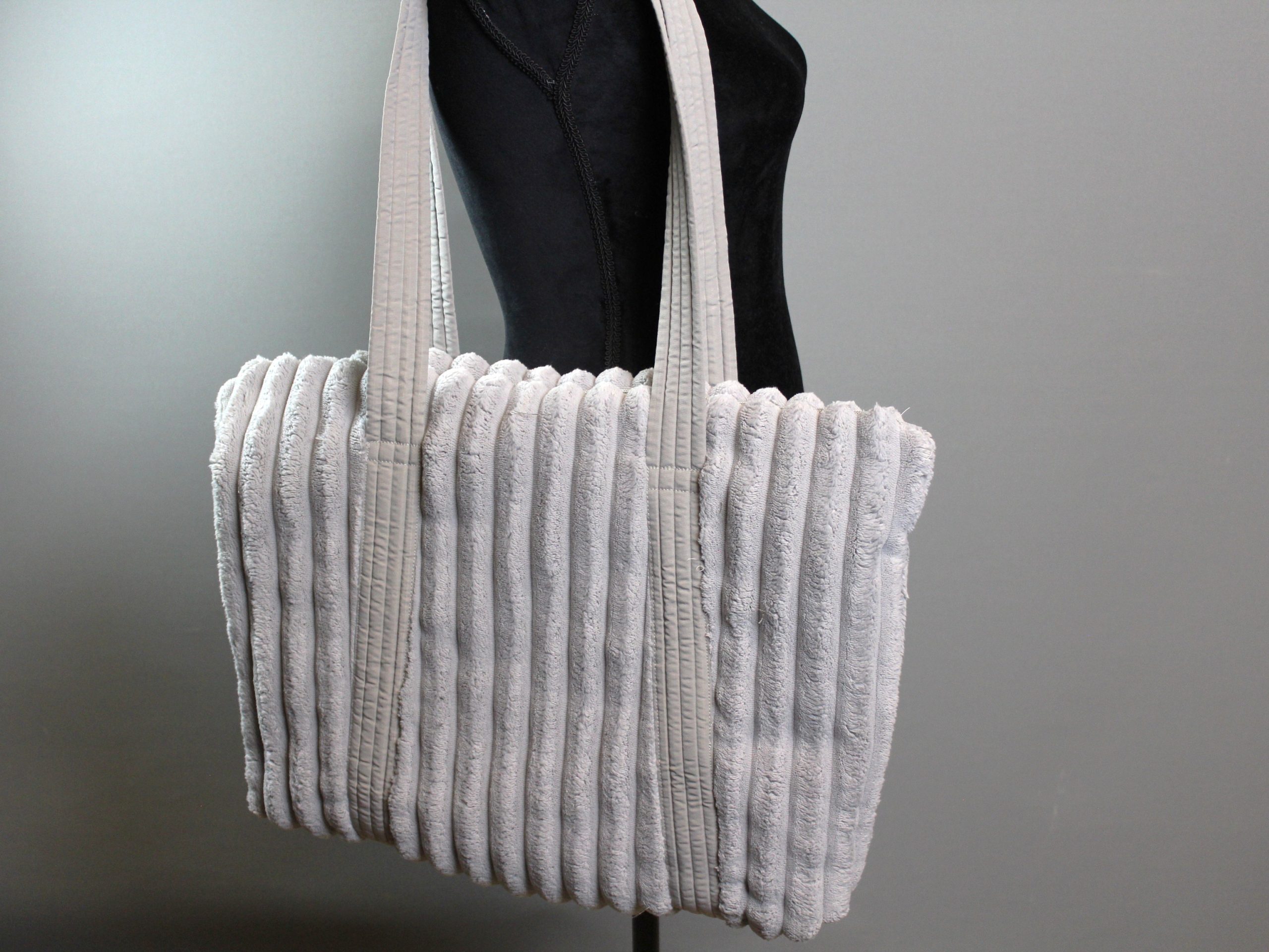 Diese große Shopper-Tasche in grau mit Fell-Optik ist ein geräumiger Begleiter, der sich