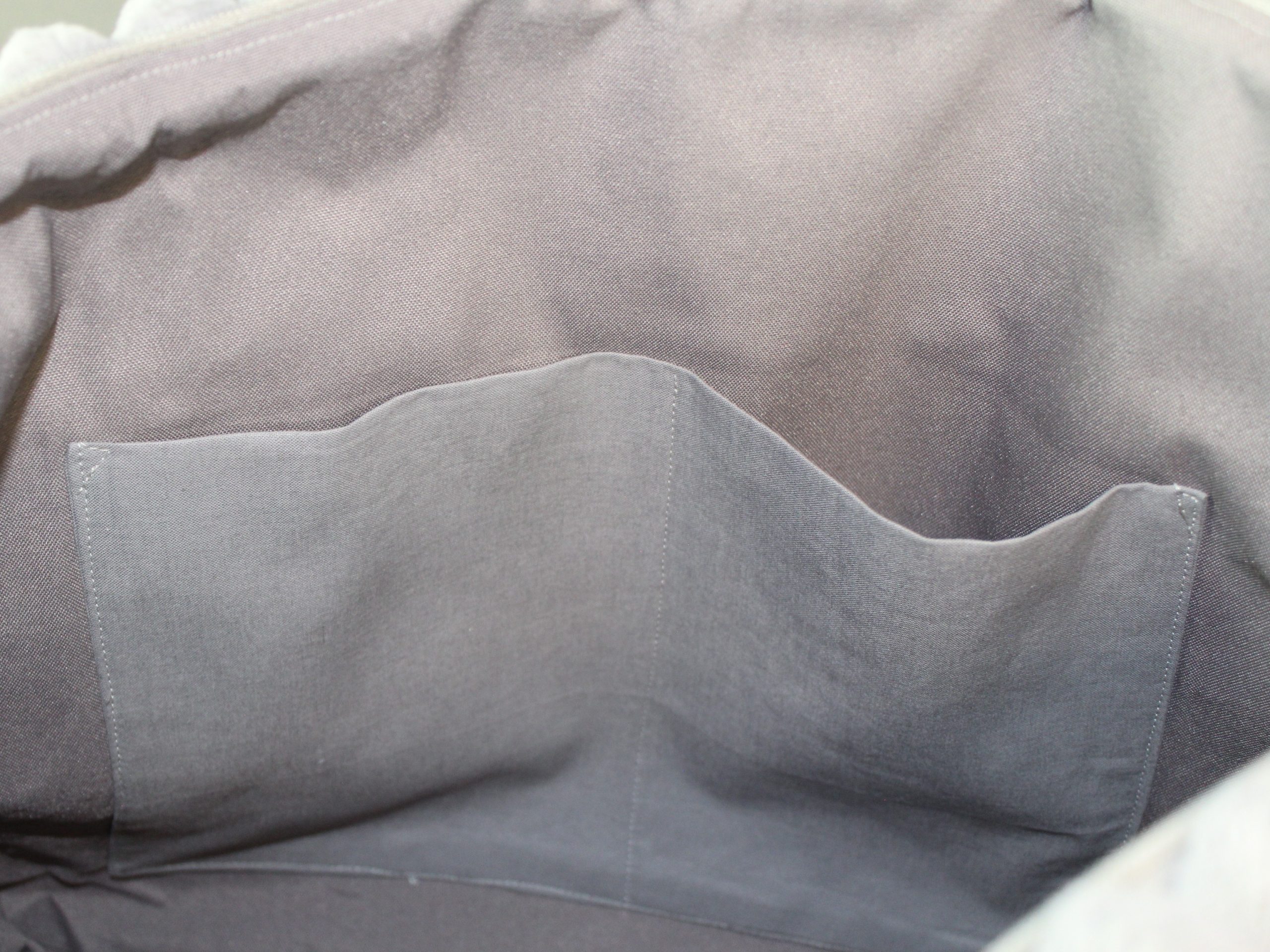 Im neutralen Innenfutter befindet sich eine Reißverschlusstasche, zwei Steckfächer und ein Karabiner für den Schlüssel.